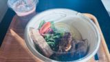 今回はアイスコーヒーとおむすびは卵黄そぼろ、生姜おかか、そして自家製とん汁を注文しました。