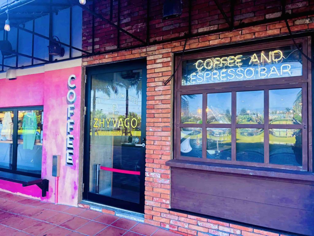 ジバゴ コーヒー ローステリーは、那覇空港から車で約1時間、北谷町美浜のアメリカンビレッジ内にあります。